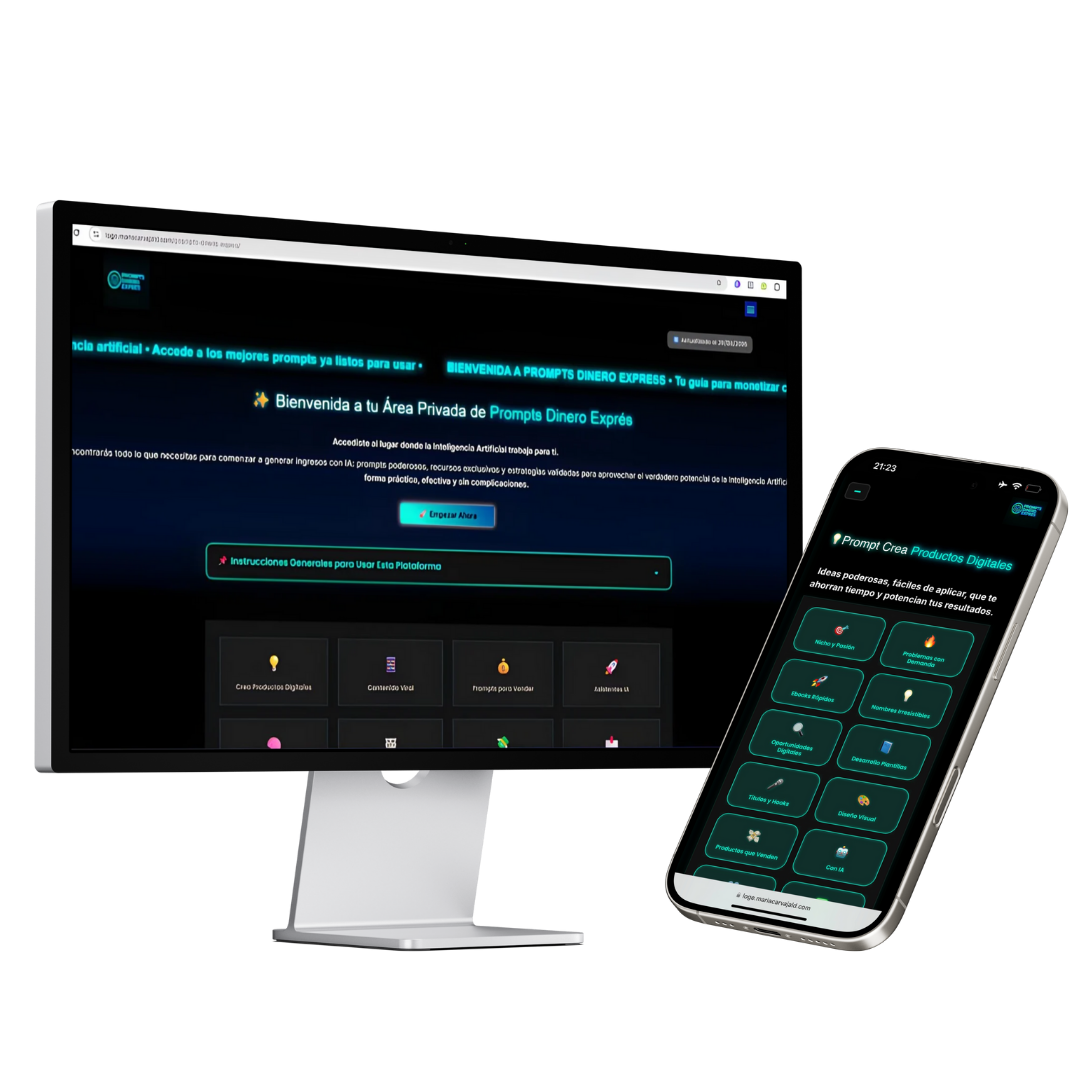 La única plataforma con más de 300 prompts probados, organizados y listos para usar, que te permitirá crear, vender y automatizar con IA sin perder tiempo, aunque no seas experto.